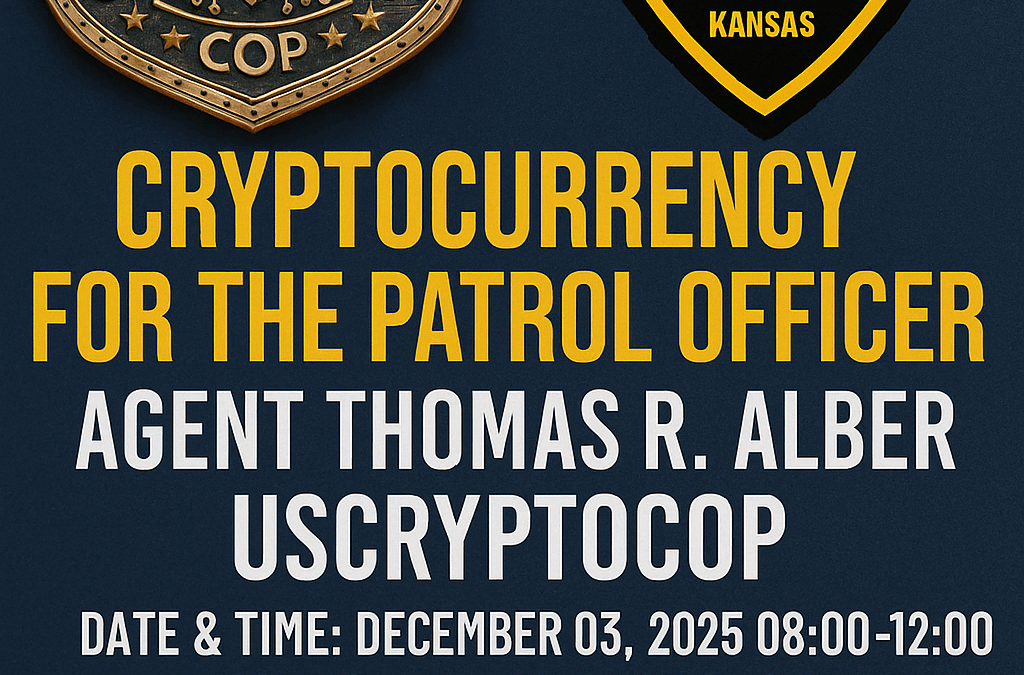 Join Agent Thomas R. Alber “USCryptoCop” for Cryptocurrency for the Patrol Officer — Dec 3, 2025, Lenexa Justice Center.